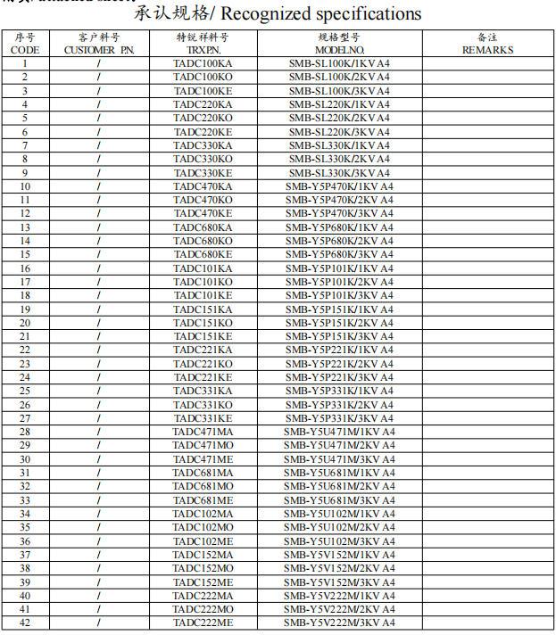 《特锐祥电子Y1电容系列承认书》